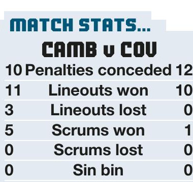 COVENTRY came away from Grantchester Road with their third bonus point win of the season sitting top of the table but were run close by a Cambridge side who are growing into the season after a disastrous start against Chinnor in round one.