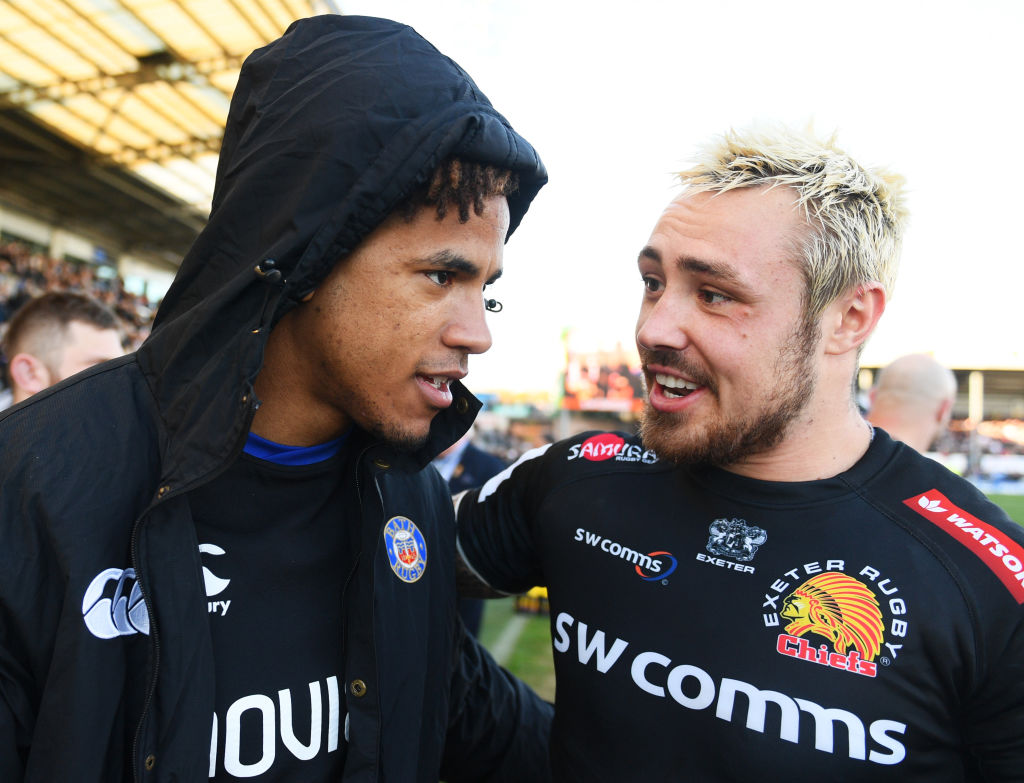Bath: 15 Anthony Watson, 14 Joe Cokanasiga, 13 Jonathan Joseph, 12 Jamie Roberts, 11 Ruaridh McConnochie, 10 Freddie Burns, 9 Kahn Fotuali’i; 1 Beno Obano, 2 Tom Dunn, 3 Max Lahiff, 4 Dave Attwood, 5 Charlie Ewels (capt), 6 Tom Ellis, 7 Sam Underhill, 8 Zach Mercer.