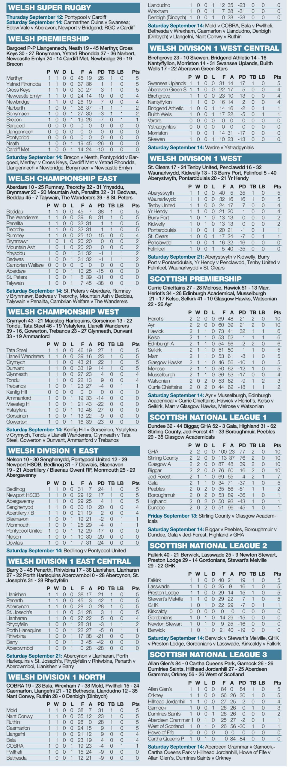 Premiership round-up By CARL FIELD WELSH Premiership champions Merthyr maintained their 100 per cent...