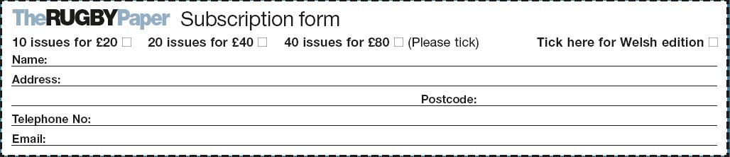 Just go to our website www.therugbypaper.co.uk and click on the section marked Subscriptions to subscribe today.