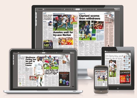Keep in touch with The Rugby Paper wherever you are at home and abroad! It is now available as an online digital edition which can be delivered straight to your computer, tablet or smartphone
