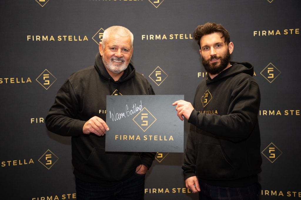 “This was a huge privilege for us – the first time we had the pleasure of welcoming such a sporting icon on site. Warren signed over 400 items, including British & Irish Lions, New Zealand and Wales Coach jackets, rugby balls and photographs! He is a hugely engaging character, a real raconteur – full of amazing stories about his illustrious career and jokes! Warren really got into the spirit of the occasion, even donning one of our exclusive Firma Stella hoodies!“