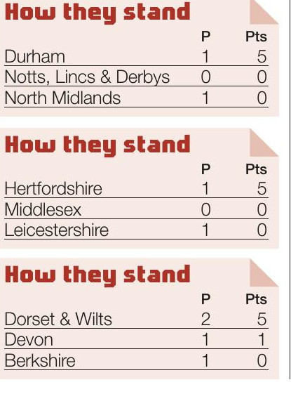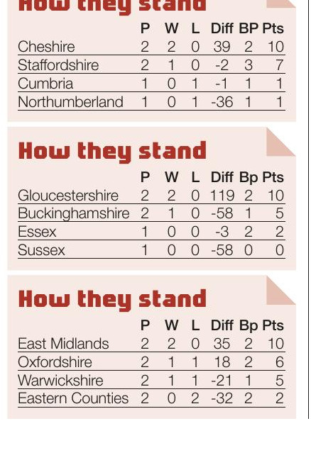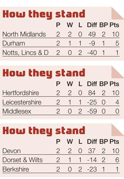 Round-up JUST Lancashire, Buckinghamshire and Surrey remain unbeaten in Division 1 after two rounds of action. Last year’s champions Leicestershire got...
