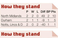 Division 2 North Durham ........... 48 Staff’shire ......28 By NATHAN EDWARDS Durham fought off Staffordshire’s late surge to continue their flawless...