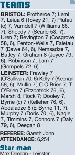 By LEE JONES Leinster A…….50 Bristol ………….15 LEINSTER took a huge step toward the quarterfinals with a fourth straight bonus point...