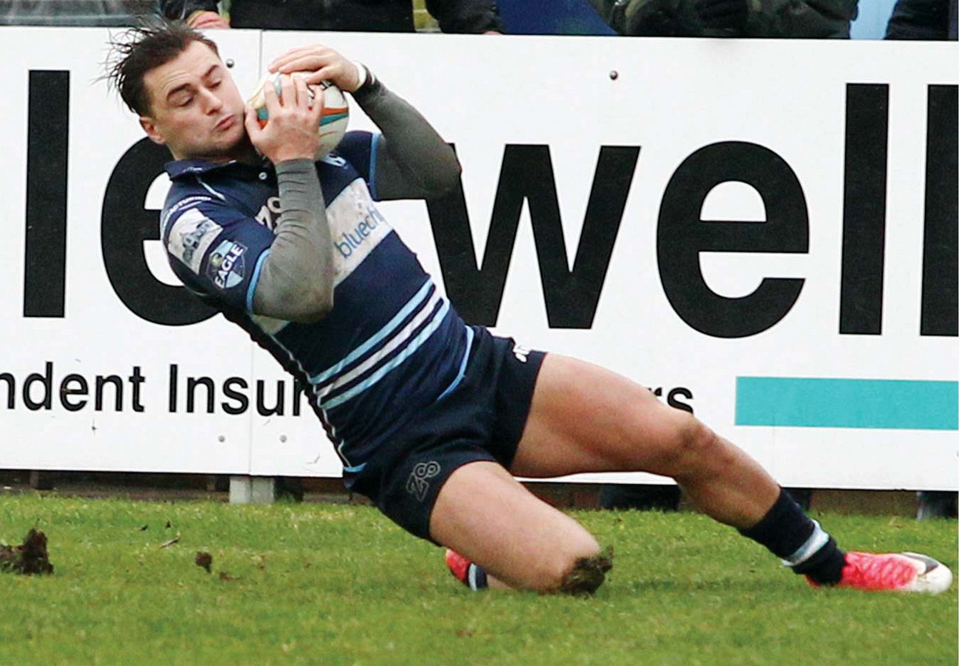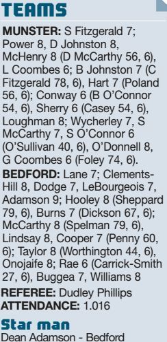 Bedford …32pts Nottingham …15pts ■By MATT WRIGHT Timing: Dean Adamson collects a crossfield kick to score TEAMS BEDFORD: Czekaj 6, Packman...