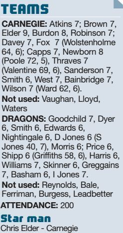 Dragons PS……17 York Carnegie.20 By TOM MOODY FOUR second-half tries after a half-time talking-to allowed Carnegie to complete the double over...