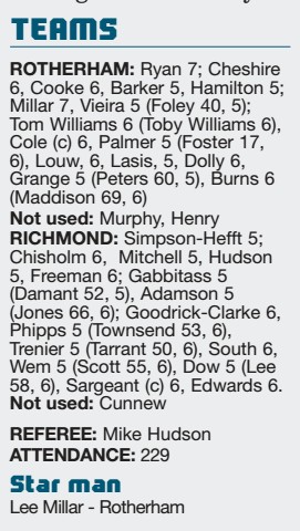 By LUKE JARMYN Richmond…35pts Rotherham …5pts TWO tries in three minutes near the hour-mark sealed Richmond’s first ever bonus-point win in...