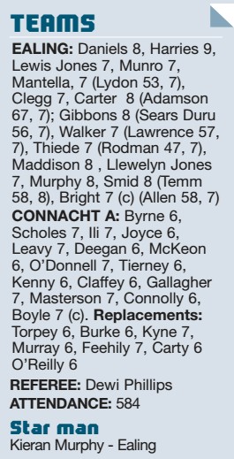 By OLI SHAPLEY Ealing ……………….35pts Rotherham ……….19pts Trailblazer: Kieran Murphy scores for Ealing while, right, William Thomas makes a break for...