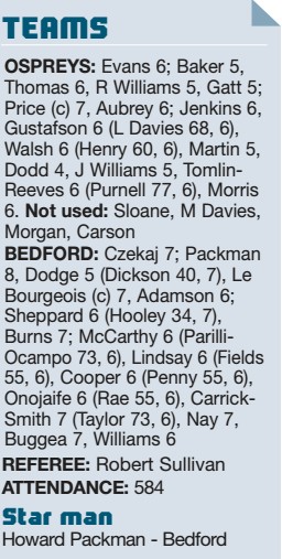 / 8 years agoOspreys fall to Bedford’s second half blitz
