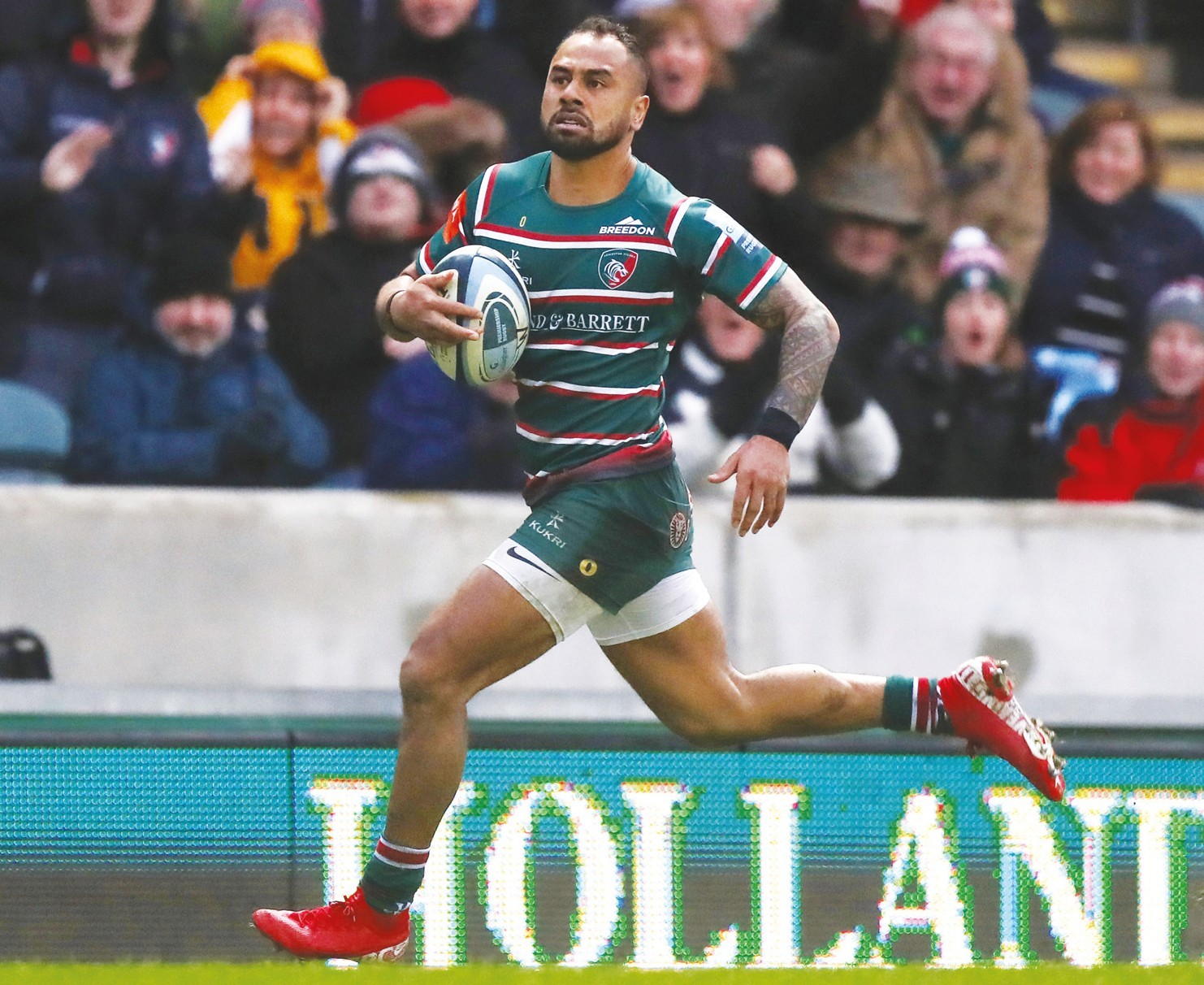 Breakaway: Telusa Veainu sprints in to score Leicester’s second try