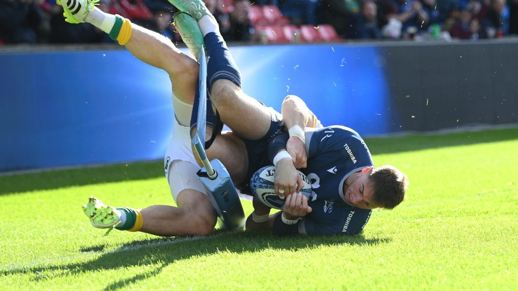 The game continued at a breathless pace as Sale set up a tidy maul down the right flank of Northampton’s 22. Clean ball allowed an eye-pleasing backs move to exploit Saints’ drift defence and give Tom O’Flaherty more than enough space to touch down and make the score 12-7.