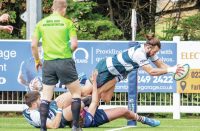■By HECTOR VICKERS Esher.........................37 Westcombe Park..35 MIKE Brown’s Esher claimed their first victory at...