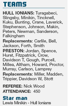 ■ By BRIAN NORMAN Hull Ionians.....41 Preston G............ 7 HOME SIDE HULL Ionians claimed...