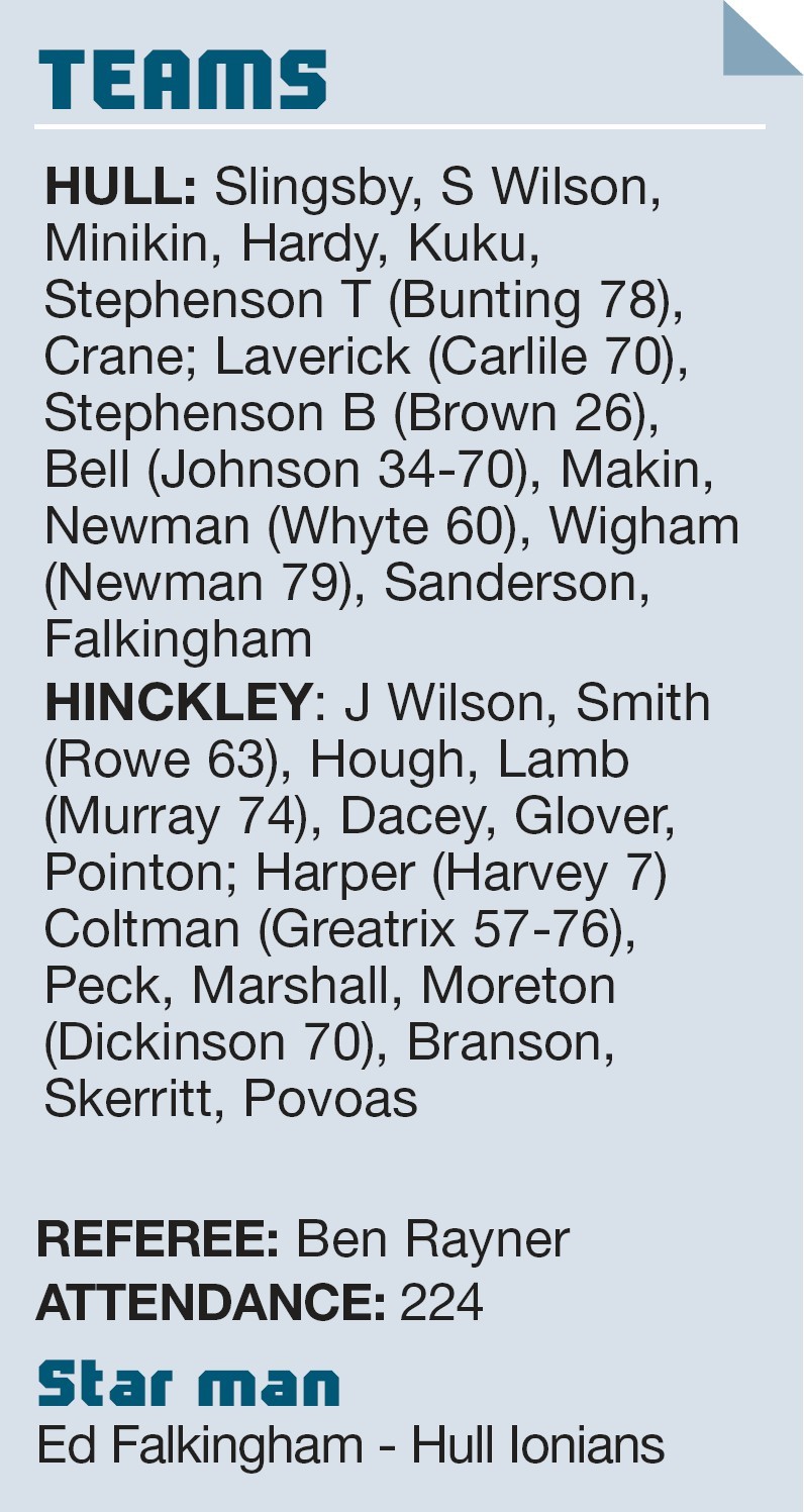 By LUKE JARMYN Hull Ionians ………31pts Hinckley ……………27pts A LATE catch-anddrive try saw table-toppers Hull Ionians stifle a Hinckley second-half resurgence...