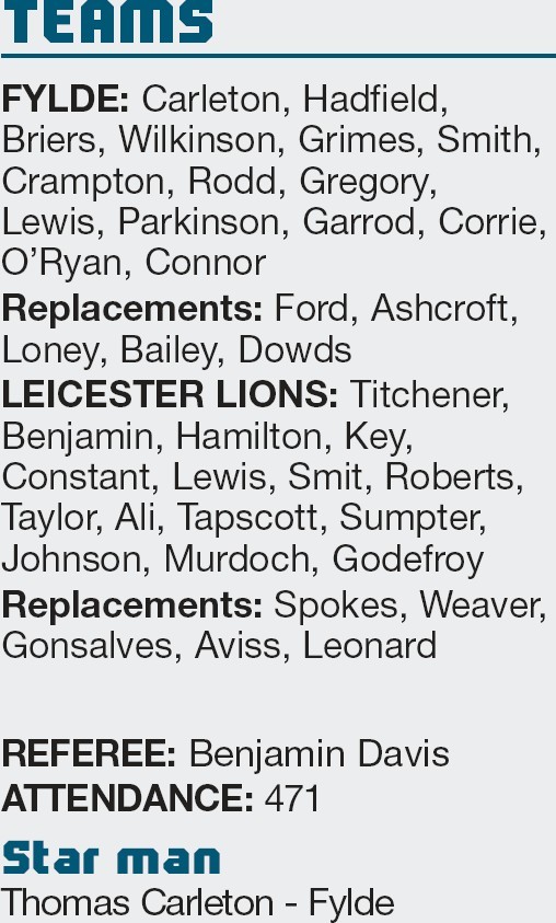 By ALLAN FOSTER Fylde …………….14 Leicester L……13 FYLDE battled their way to victory in tough conditions against Leicester Lions. It looked...