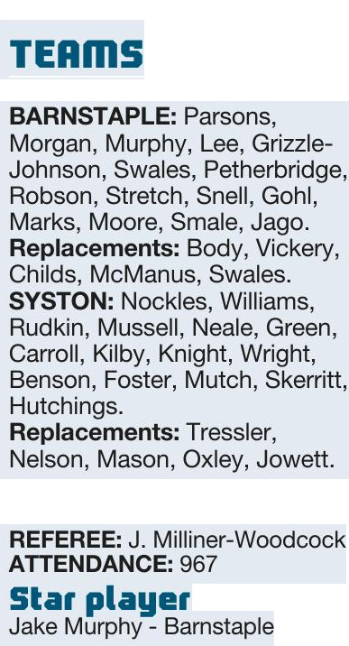 nBy VICKY MACQUEEN Hinckley..................47 Redruth....................36 HINCKLEY delivered a fine performance to hold out for...
