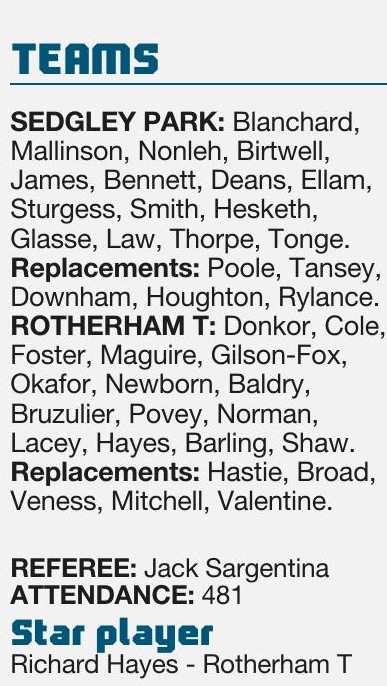 ■By GARETH DANIELS Sale FC...............29pts Tries: Davey 15, Walsh 20, Langdon 30, Dixon 68,...