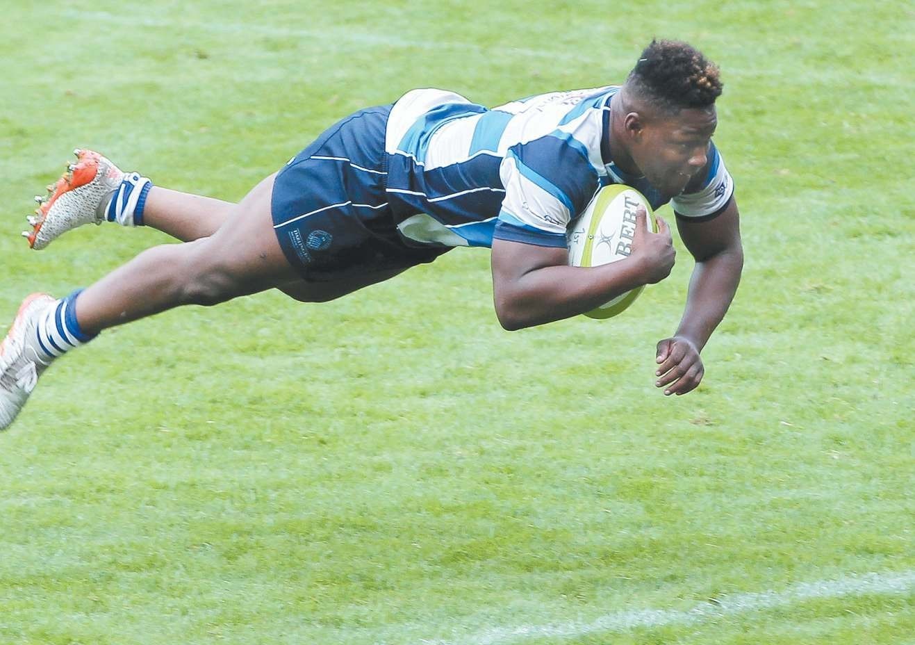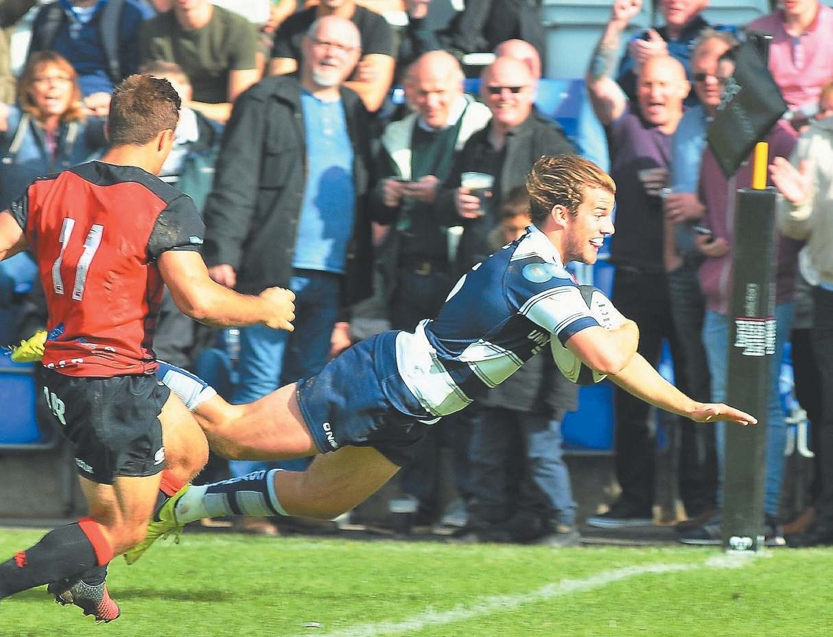 Acrobatic: Simon Uzokwe of Darlington Mowden Park dives over for his first try PICTURES: Mark Fletcher DARLINGTONMowden Park coach John Newton...