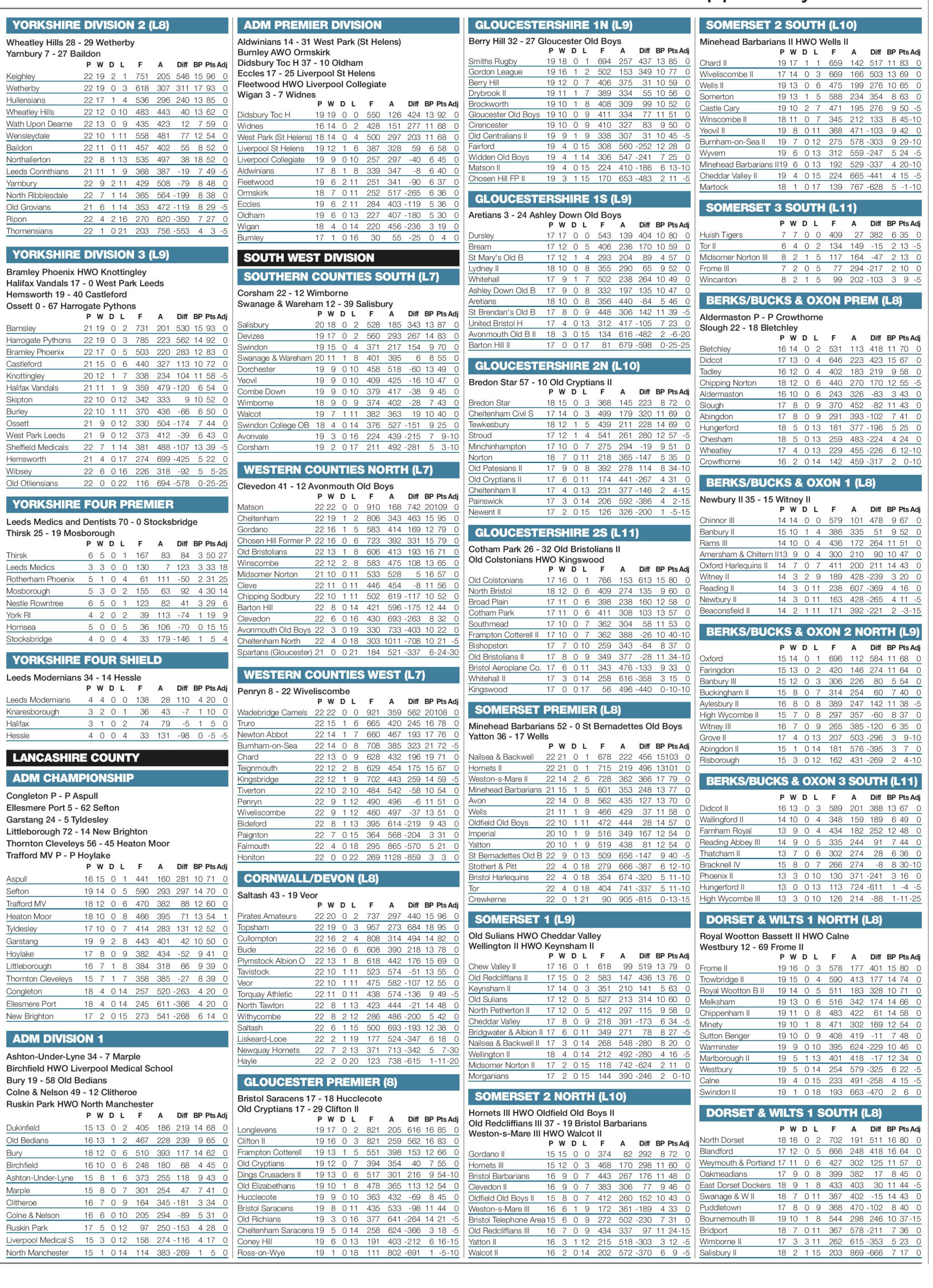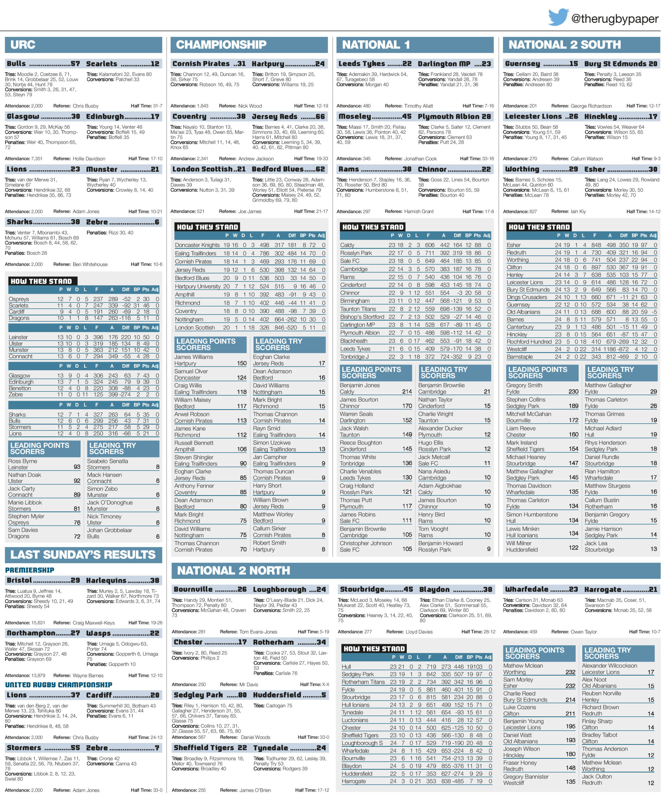 Results and tables supplied by the RFU ... Continue reading... Access all our premium content from as little as 14p per...