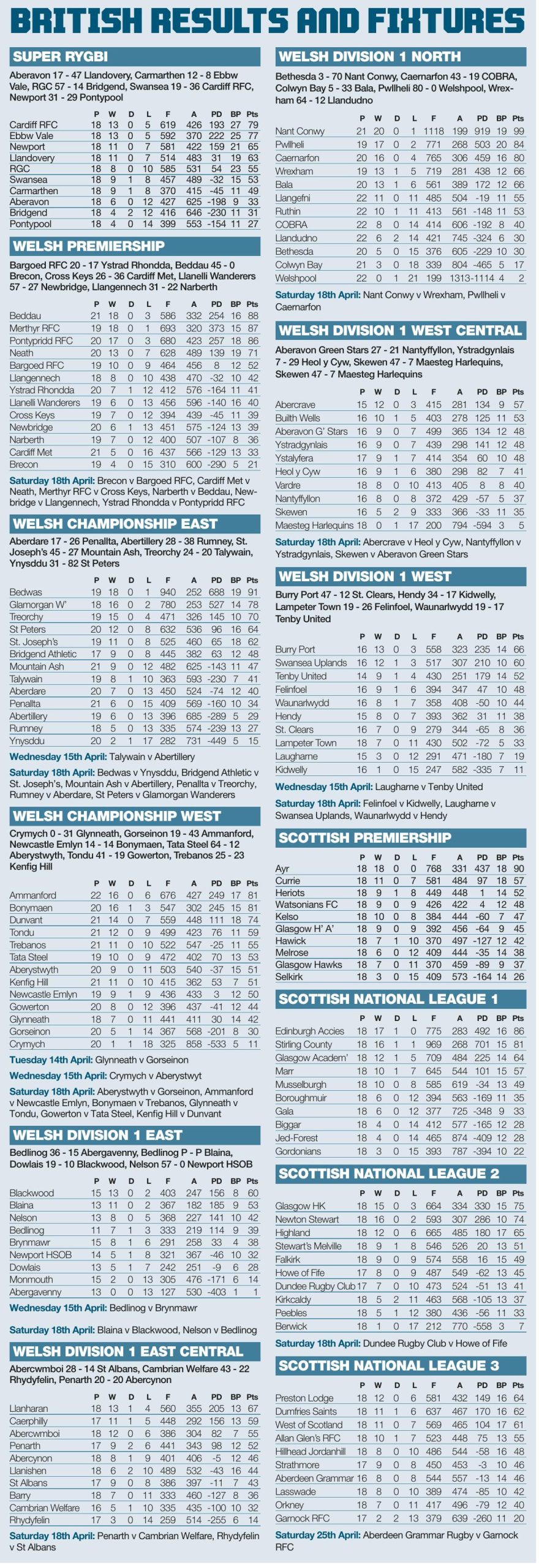 BRITISH RESULTS AND FIXTURES