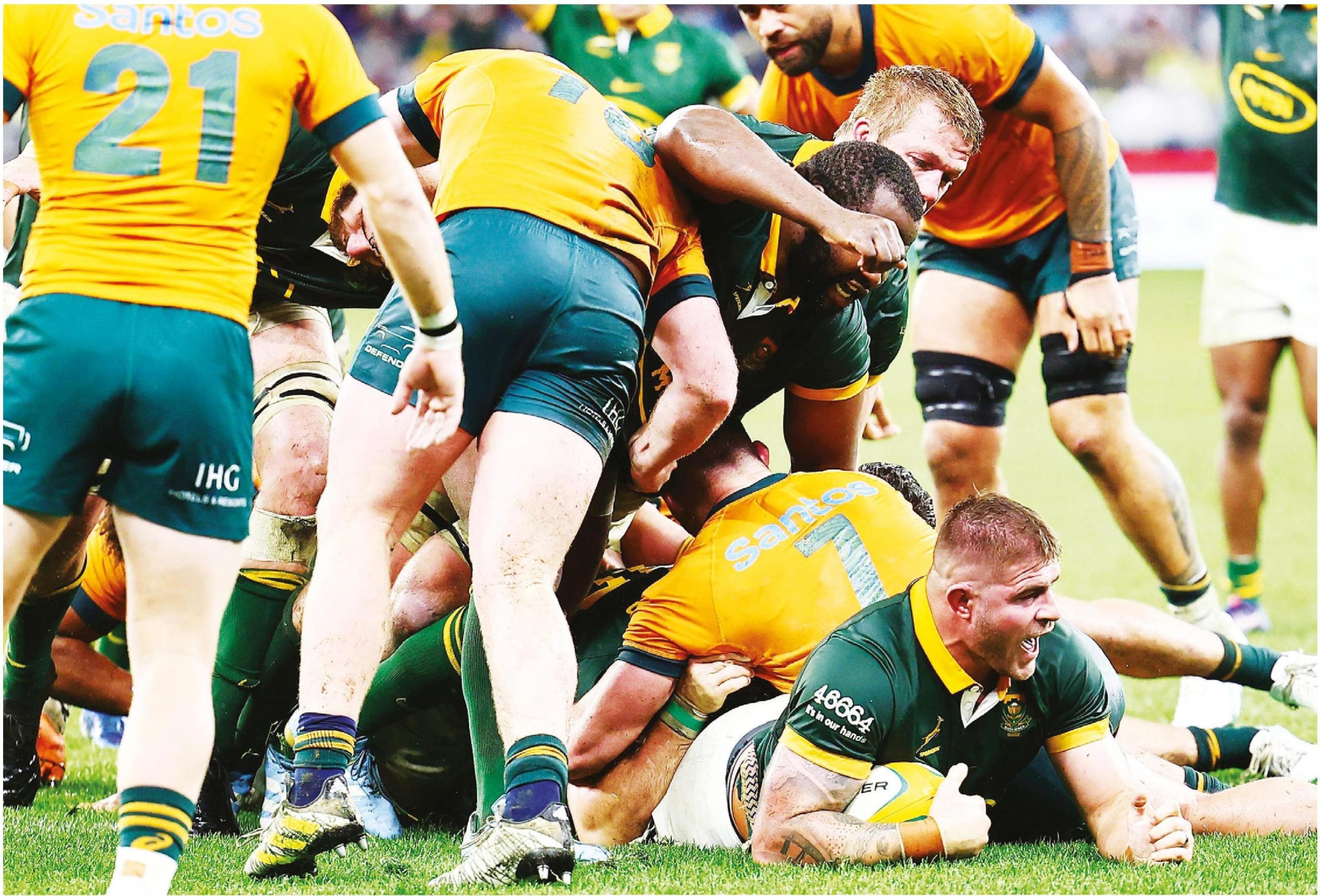South Africa ................30pts Tries: Moodie 11, Smith 35, Etzebeth 74 Conversions: Pollard 12, 36, 75 Penalties: Pollard 2, 6, 57 Australia...