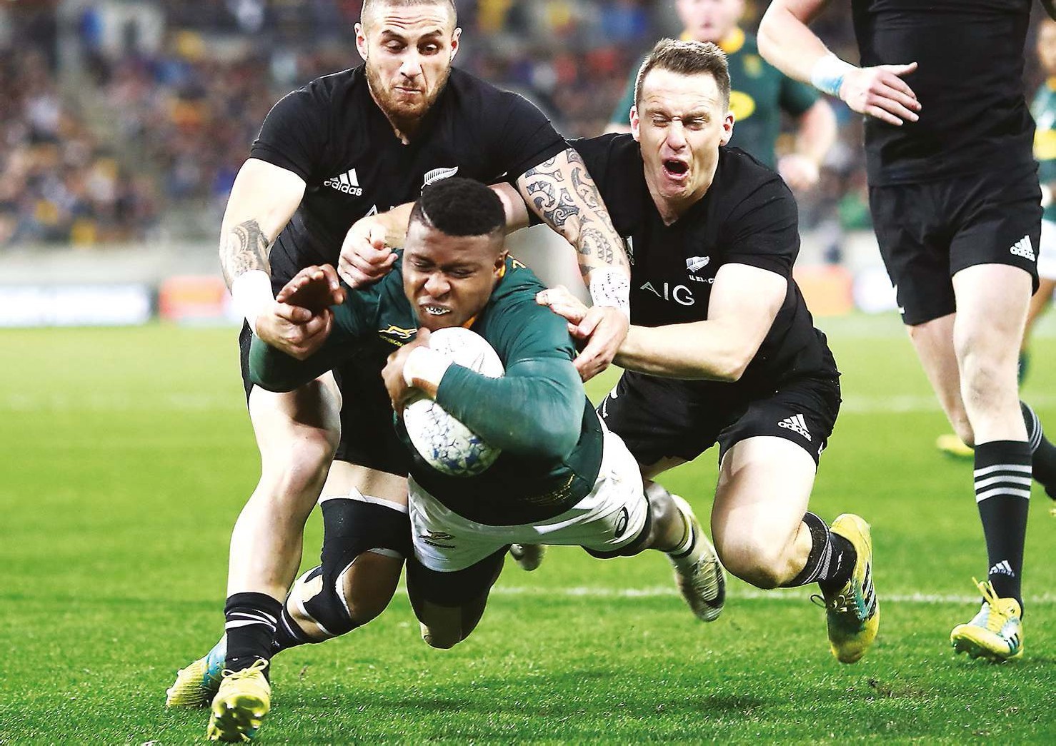 By BRENDAN GALLAGHER Doubling up: Aphid Dyantyi scores his second try for the Boks PICTURE: Getty Images SOUTH AFRICA produced their...