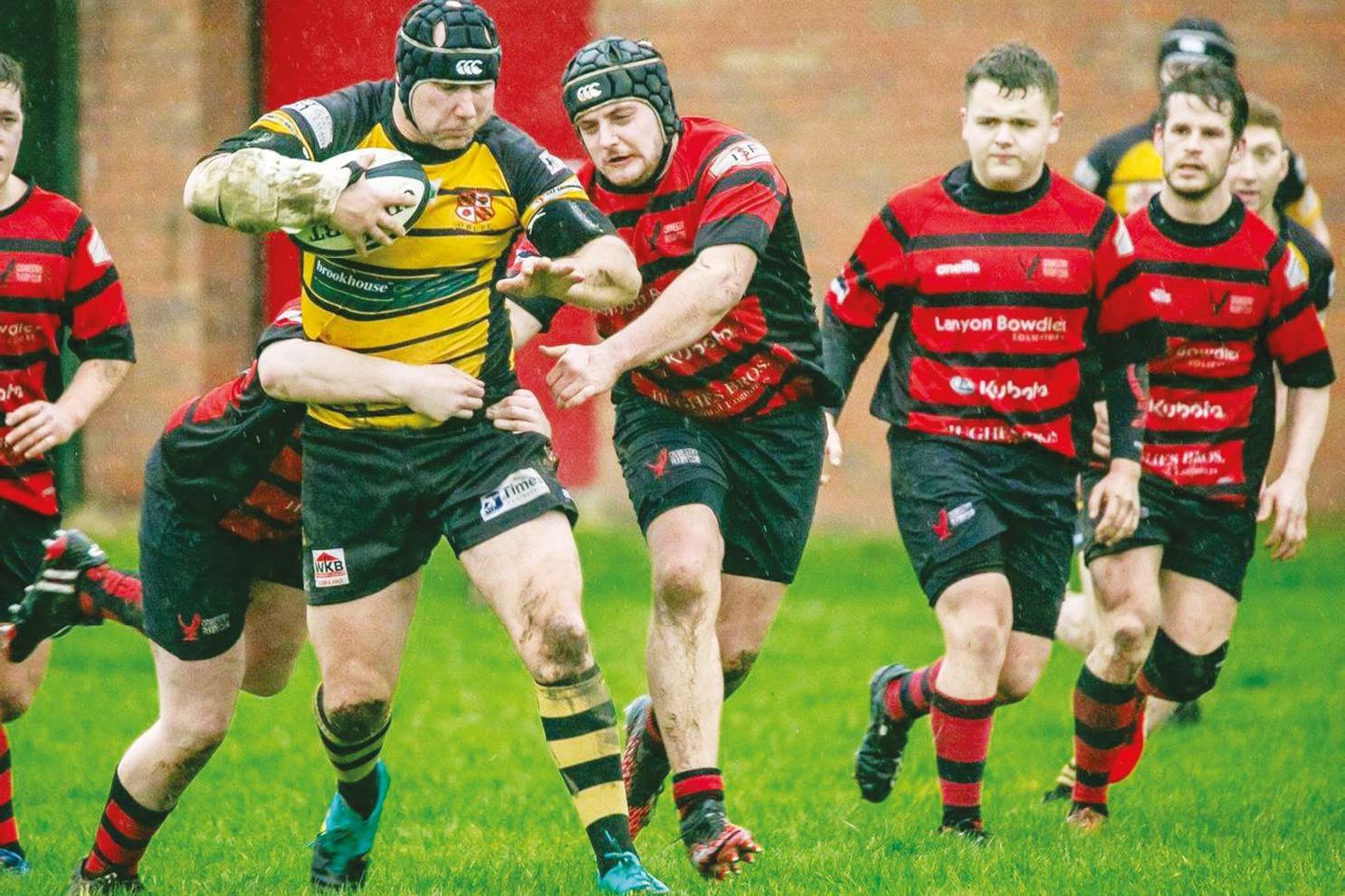 Otley players Andy Glover, far left, and Steve Ormesher make hard yards. Chairman Tony Havlin ONE of the many northern victims...