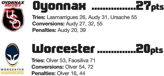 By GEORGE LAWRENCE WORCESTER managed to earn a late bonus point against Oyonnax at a freezing Stade Charles-Mathon which could prove...