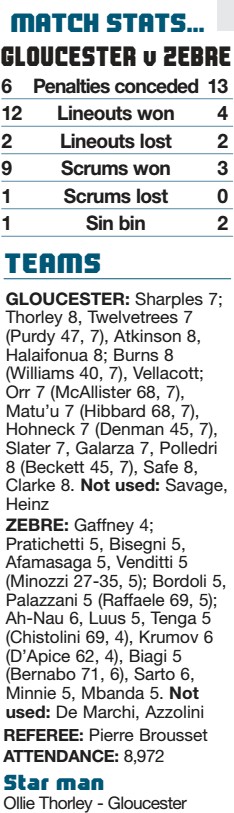 / 8 years agoThorley stars as Gloucester zap Zebre in 11-try romp