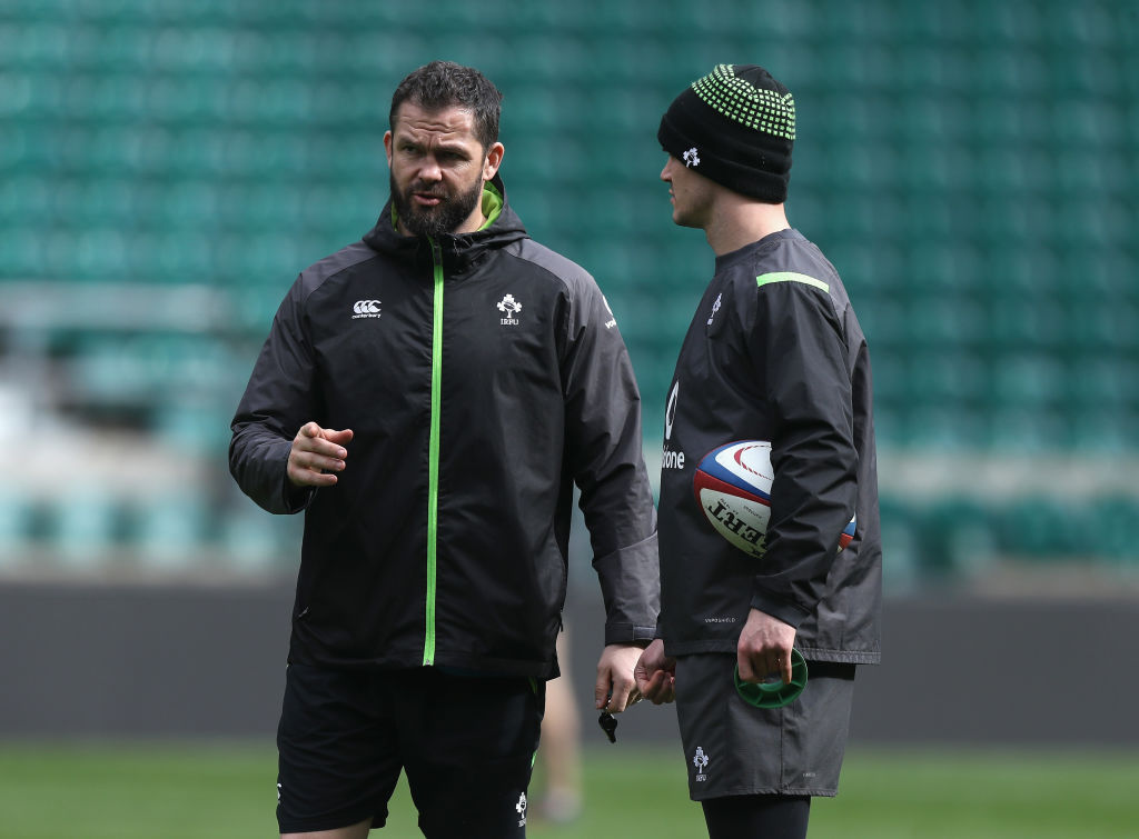 Lions link: defence coach Andy Farrell talks to star fly-half Johnny Sexton. Photo: David Rogers/Getty Images