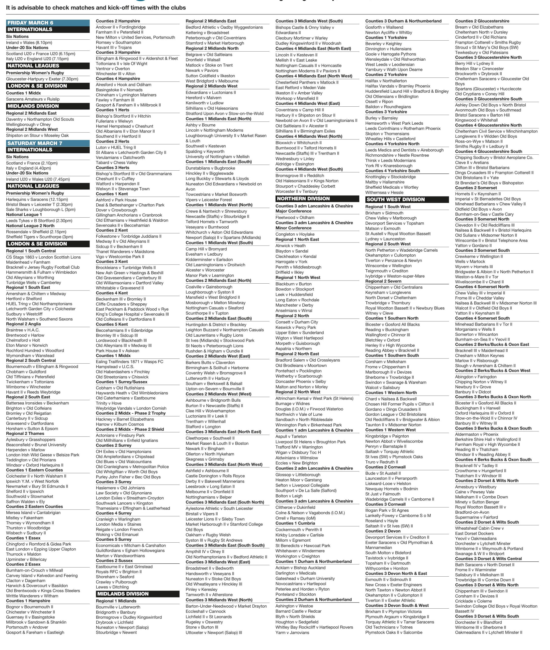 Forthcoming fixtures