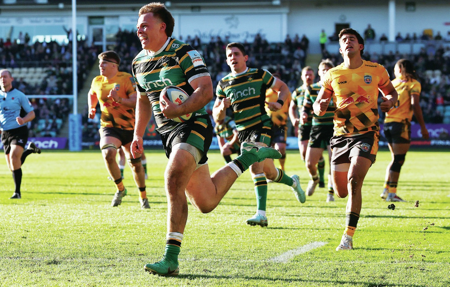 Fighting fit: George Furbank on the attack for Northampton in their win over Newcastle...