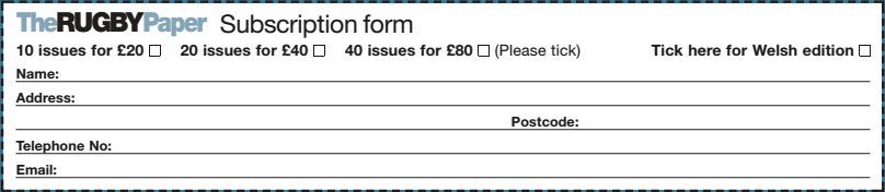 You can subscribe to The Rugby Paper. Just fill out the form below and send your cheque for £20, £40 or...