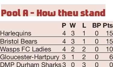 By JOHN CLIFFORD Wasps.......................35 Gloucester-H.......... 20 CHRIS Balogun’s hattrick of tries secured Wasps a bonus-point win over Gloucester-Hartpury in their final...