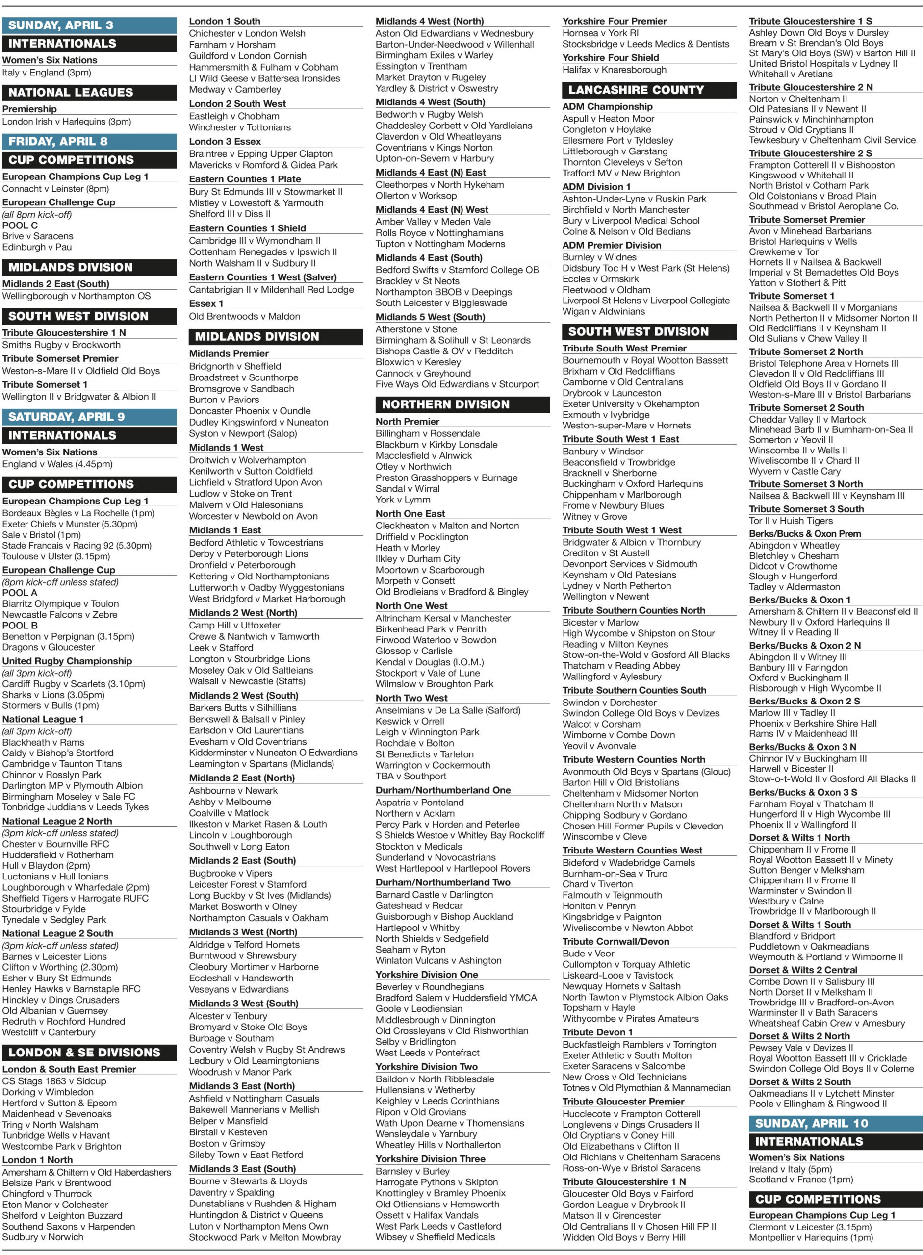 / 4 years agoBRITISH RUGBY RESULTS AND FIXTURES