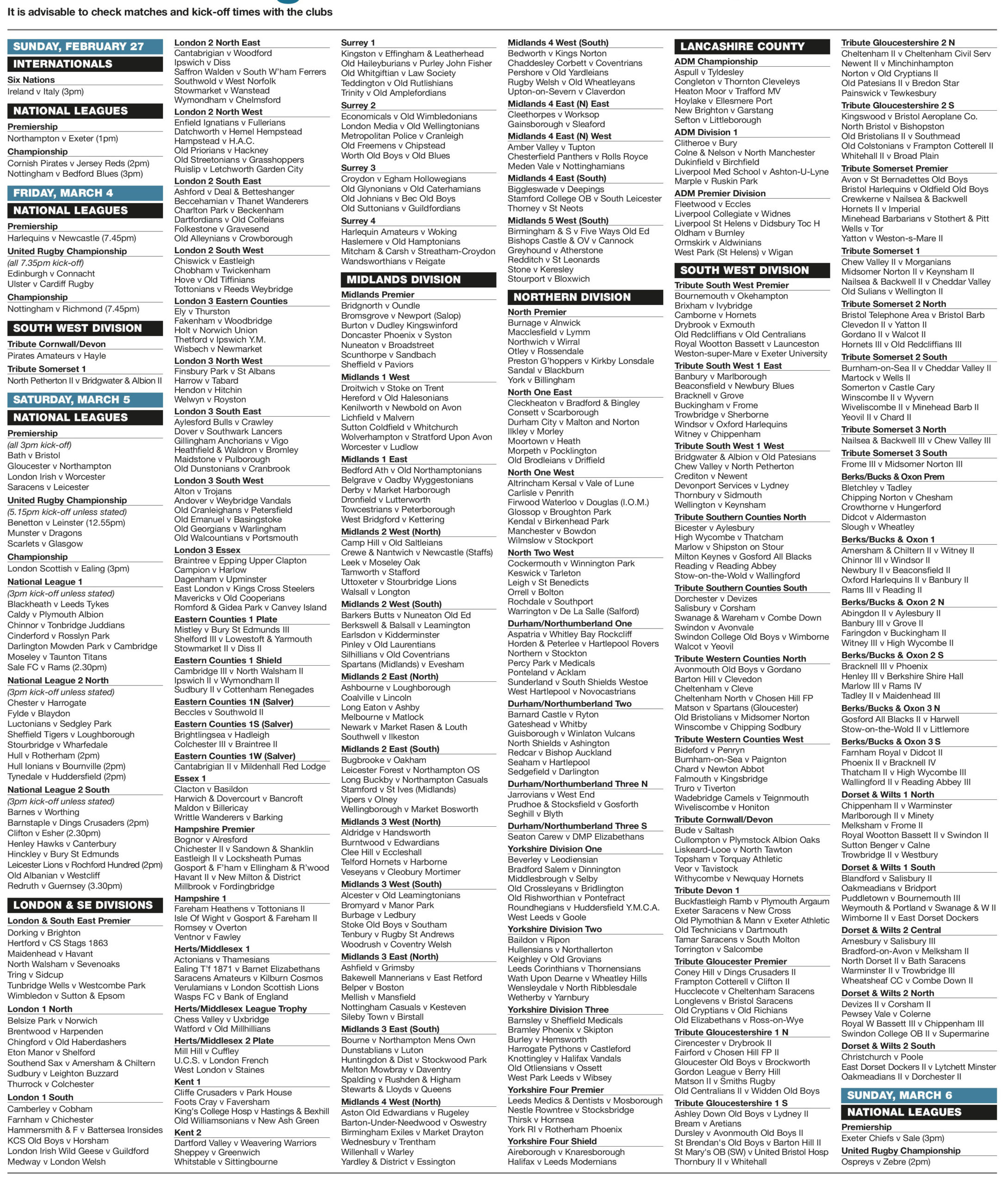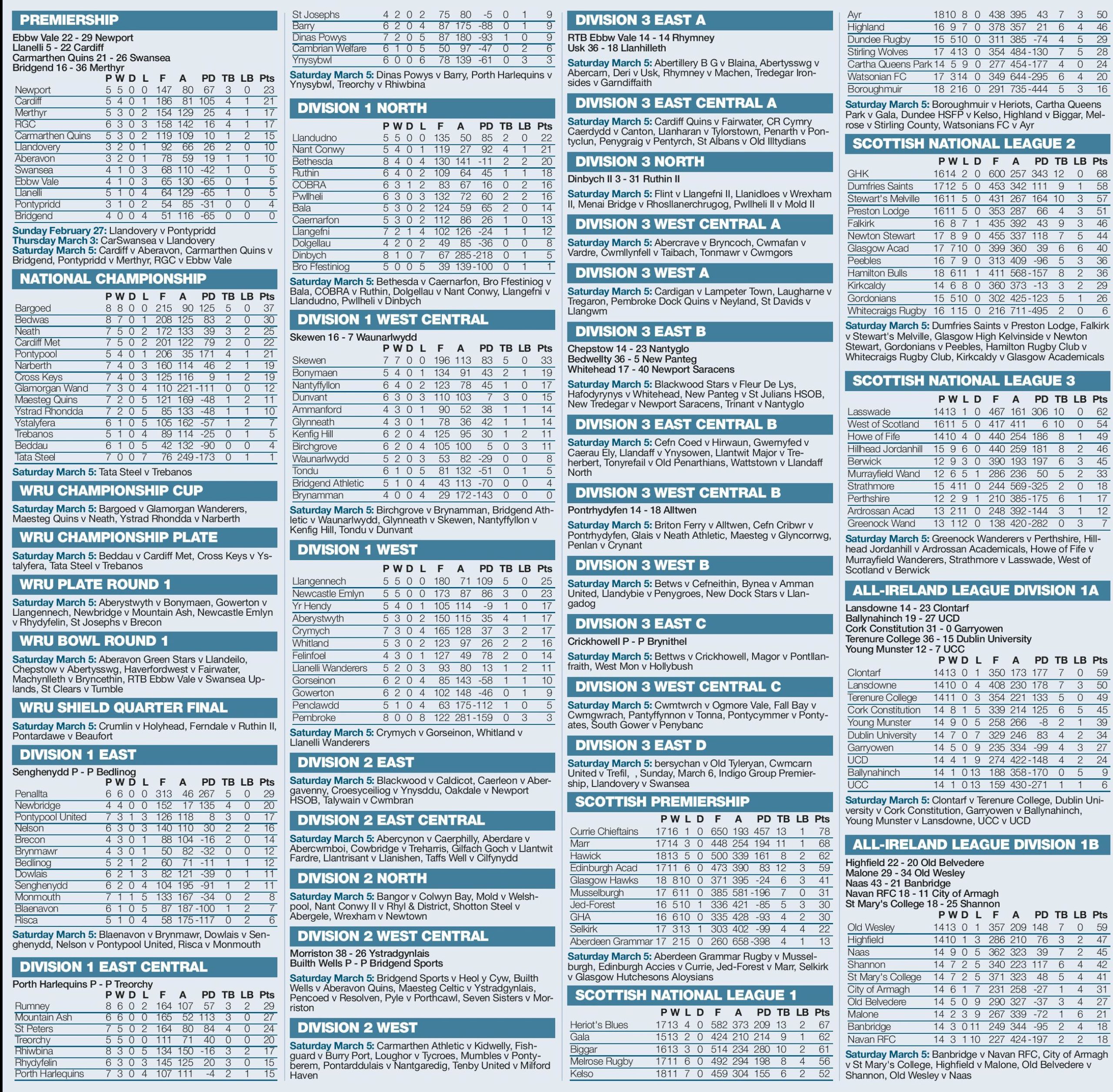 / 4 years agoBRITISH RUGBY RESULTS AND FIXTURES