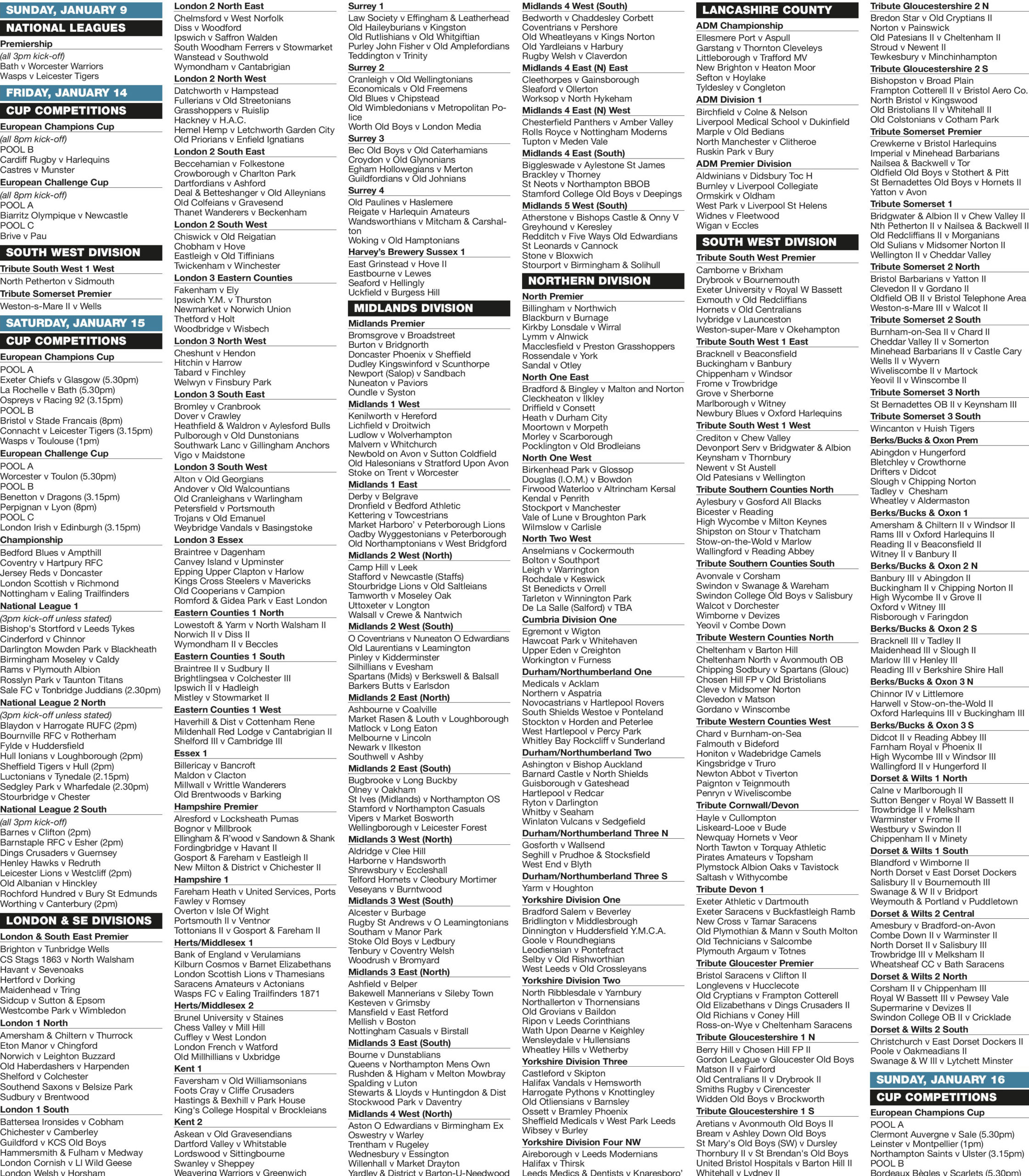 Week beginning Sunday, January 9, 2022 It is advisable to check matches and kick-off times with the clubs ... Continue reading......
