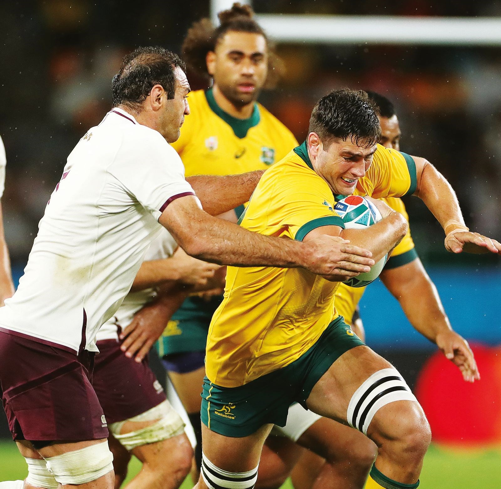 JEFF PROBYN A FRONT ROW VIEW OF THE GAME Under pressure: David Pocock assesses the Aussie scrum during the RWC quarter-final...