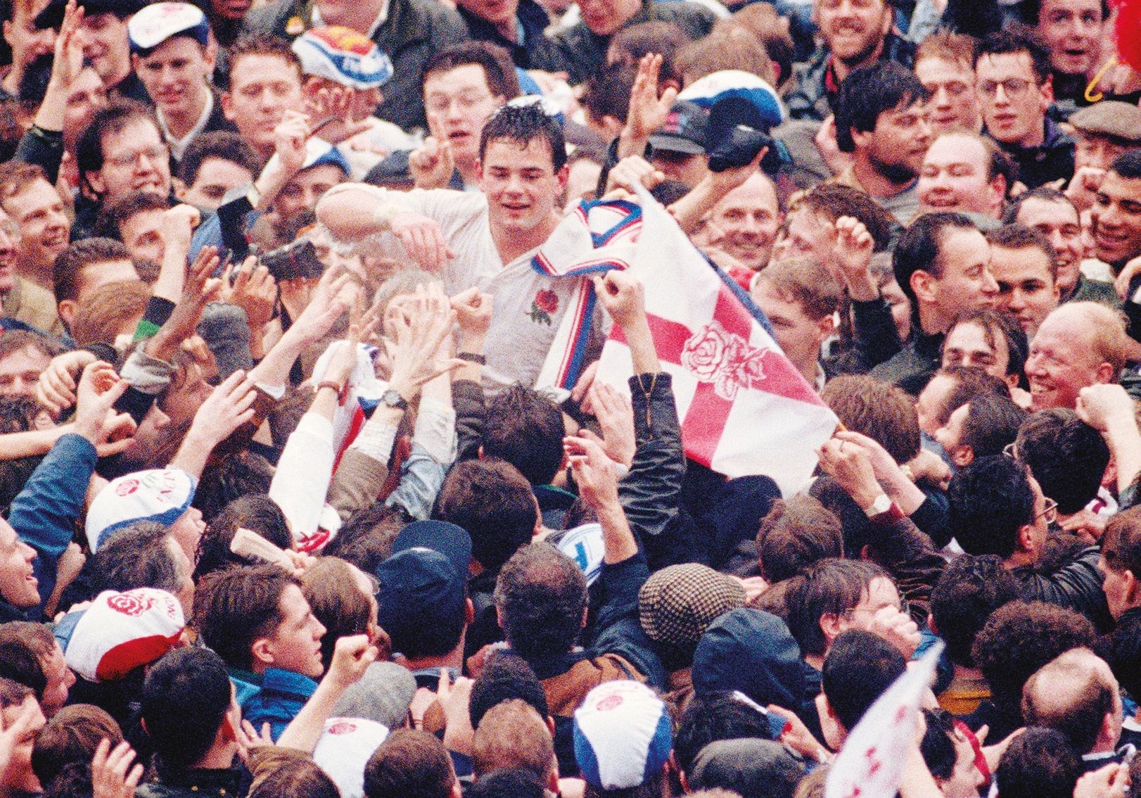 JEFF PROBYN A FRONT ROW VIEW OF THE GAME Adoration: Will Carling chaired off after England’s Grand Slam of 1991; inset...