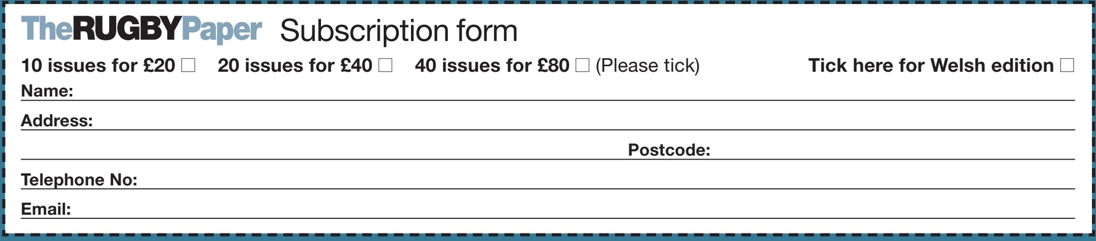 You can subscribe to The Rugby Paper. Just fill out the form below and send your cheque for £20, £40 or...