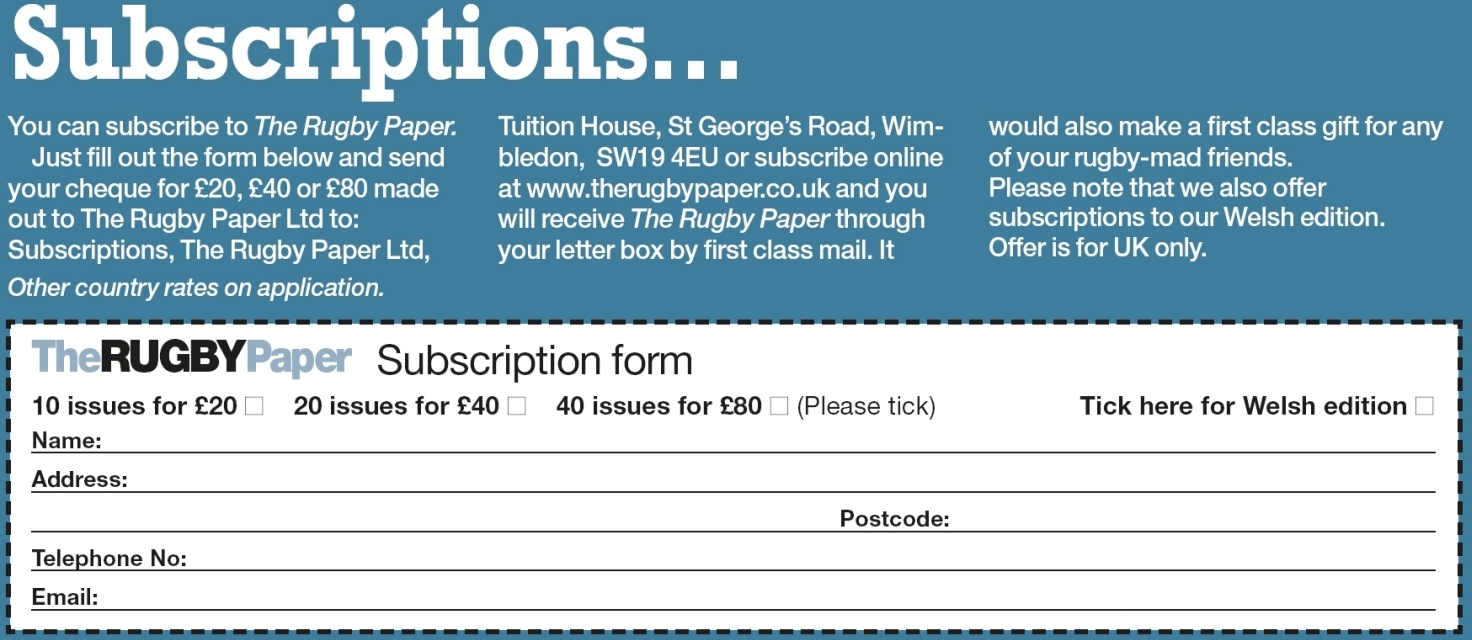 You can subscribe to The Rugby Paper. Just fill out the form below and send your cheque for £20, £40 or...