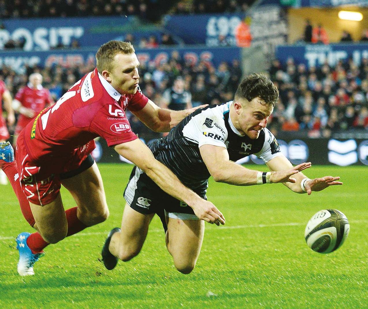 Biggest in Wales: Luke Morgan scores for Ospreys against Scarlets on December 22 at Liberty Stadium Highest club attendances over Christmas...