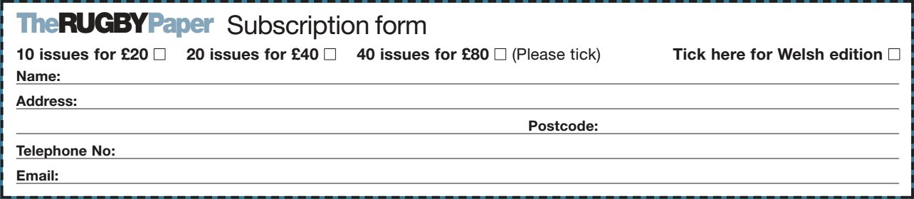 fromYou can subscribe to The Rugby Paper. Just fill out the form below and send your cheque for £20, £40 or...