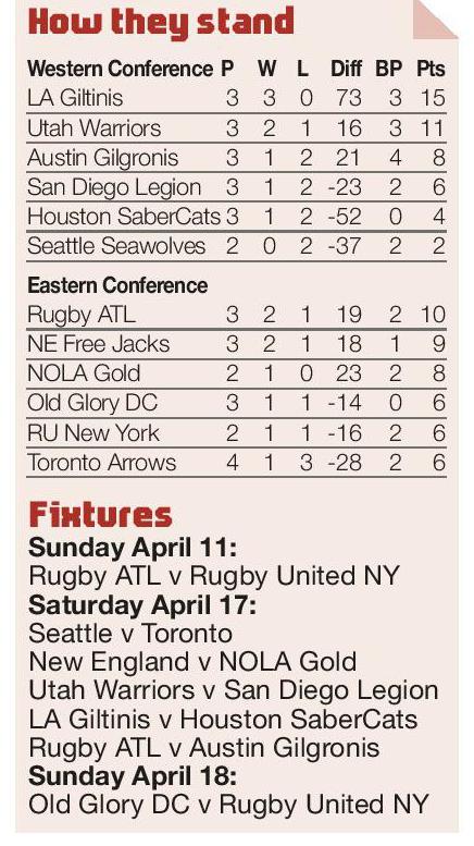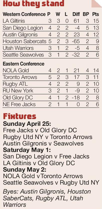MLR ROUND-UP By SAM JACKSON MLR newcomers LA Giltinis continued their assault on the rest of the league with a 43-16...