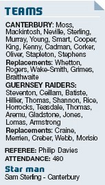By JON BATHAM Canterbury.......29 Guernsey.......... 17 MAN-of-the-match Tristan King inspired Canterbury to a bonus-point win over Guernsey. The versatile forward was...