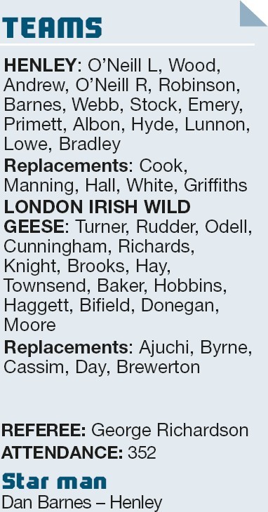 By DAVID BALLHEIMER Canterbury.............. 10 Henley Hawks....... 19 HENLEY Hawks scored three second-half tries to see off the determined challenge of...