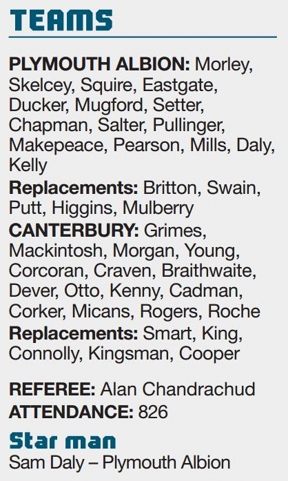 By PADDY MARSH Plymouth……………41 Canterbury……………20 DESPITE having a man sent off and two players stretchered off, Plymouth came back from a...