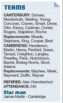 By STEVE JACKSON MATT Hema’s 12th try of the season snatched victory from the jaws of defeat for Cambridge in the...