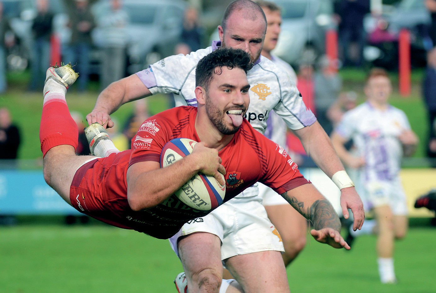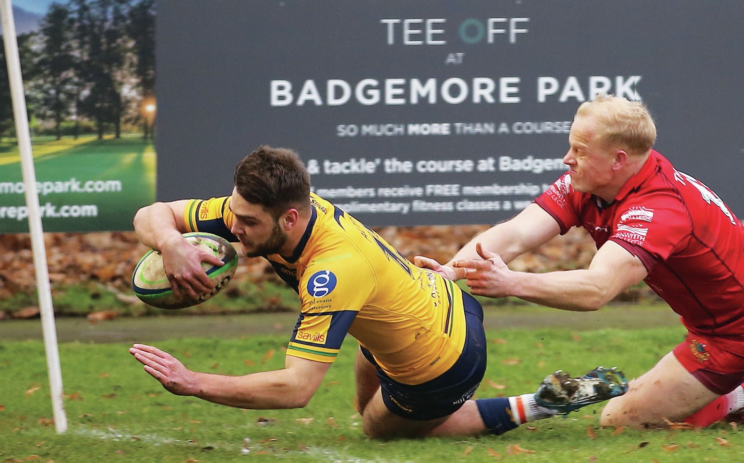 By NICK PITSON Henley Hawks...21pts Redruth.............. 21pts Drama: Henley’s Alex Harmes dives over for their first try HENLEY Hawks and Redruth...